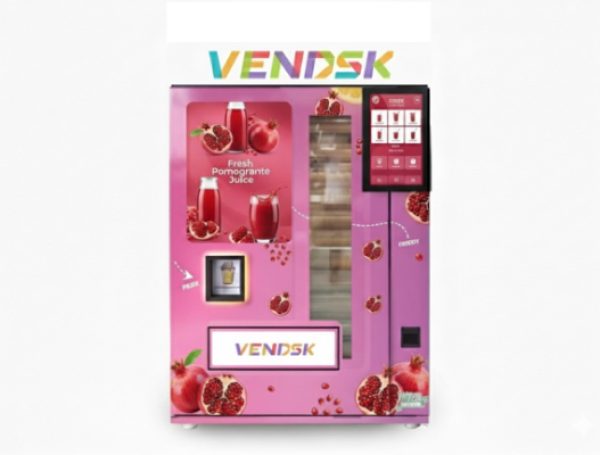VENDSK Pomegranate Juice Vending Machine is crafted to provide nutrient-rich, antioxidant-packed juice instantly with unmatched freshness. Designed with precision engineering, the machine extracts juice from whole pomegranates while preserving their natural taste and health benefits. Its hygienic process eliminates human handling, ensuring a safe, clean, and transparent juicing experience for customers. With a modern display, intuitive controls, and efficient operation, it is perfect for gyms, wellness centers, shopping complexes, hospitals, and corporate hubs. The system requires minimal maintenance with an automated rinsing mechanism, offering operators hassle-free management and high profitability. Its eye-catching design attracts attention, while its reliability builds customer confidence. VENDSK redefines healthy vending by delivering premium pomegranate juice that combines convenience, wellness, and advanced technology in every serving.
